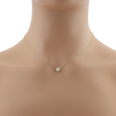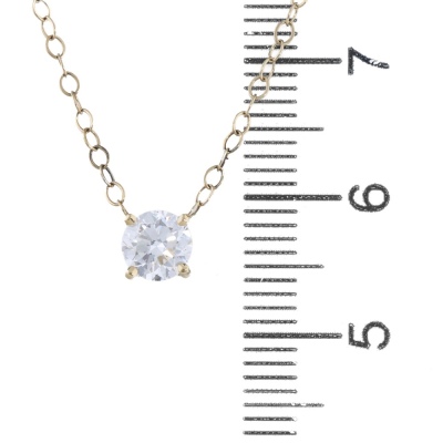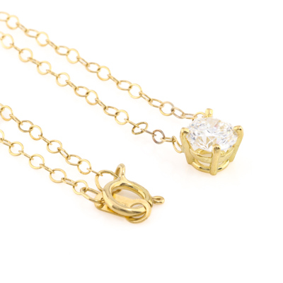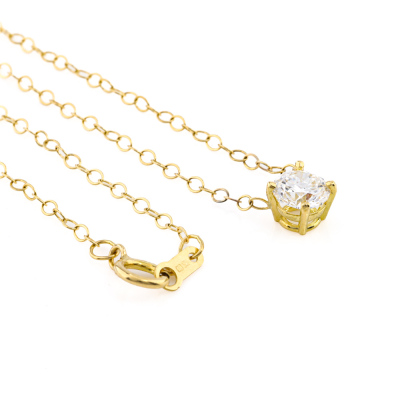 Diamond solitaire pendant with round brilliant cut Natural Diamond of 0.50ct (with GIA Diamond Dossier Report graded as E SI1 #3525057463). 18ct yellow gold with 18ct yellow gold attached chain. Length: 41.5cm. Weight: 1.2g (New)