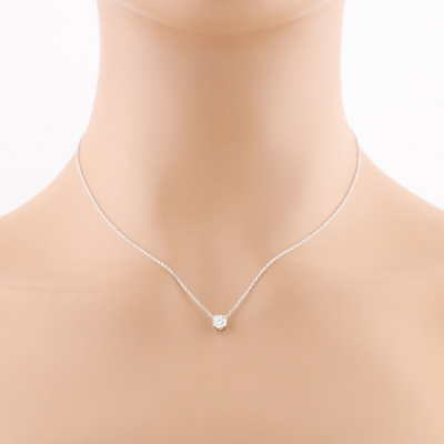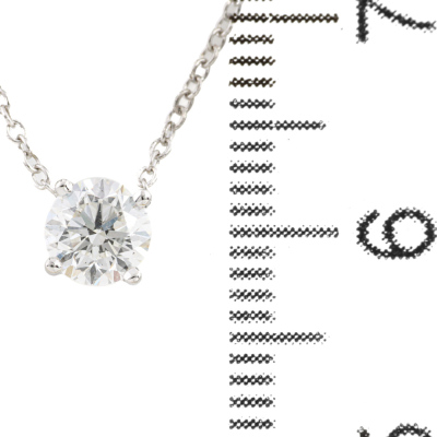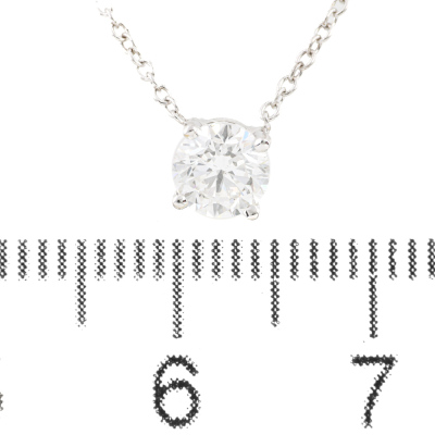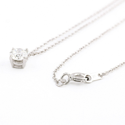 Diamond solitaire pendant with round brilliant cut Natural Diamond of 0.50ct (with GIA Diamond Dossier Report graded as E SI2 #6511820162) 18ct white gold with 18ct white attached chain. Length: 41.5cm. Weight 1.5g. (New)