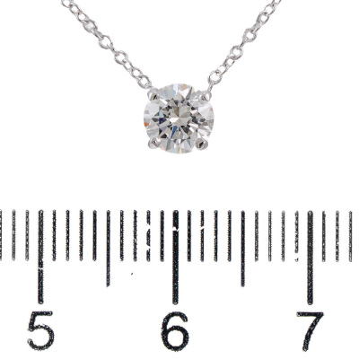 Diamond solitaire pendant with round brilliant cut Natural Diamond of 0.50ct (with GIA Diamond Dossier report graded as G Internally Flawless #6521711692). 18ct white gold. Length: 41.0cm. Weight: 1.4g (New)
