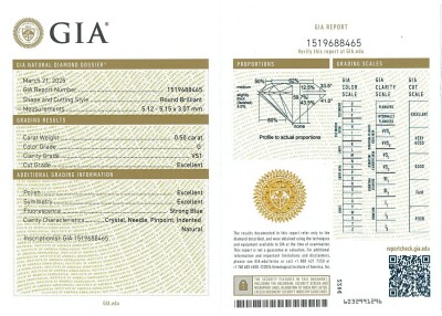 Diamond pendant with round brilliant cut Natural Diamond of 0.50ct (with GIA Diamond Report graded as G VS1 #1519688465). Platinum with 18ct white attached chain. Length: 41cm. Weight 1.9g. (New)