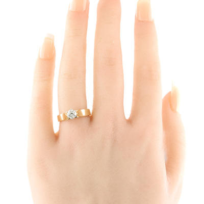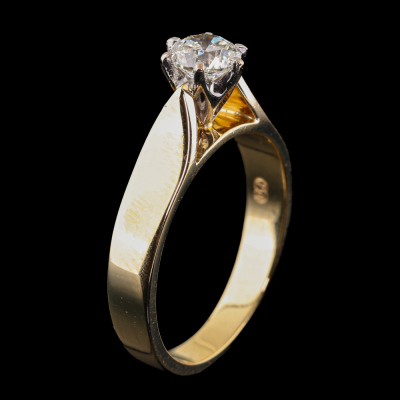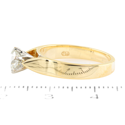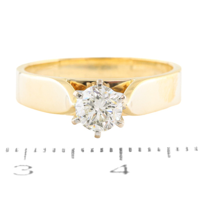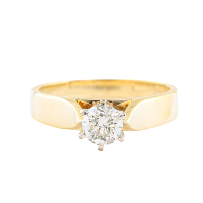 Diamond solitaire ring with round Natural Diamond of approximately 0.50ct (Estimated grading: H VS). 18ct yellow gold. Ring size: L1/2. Band width: 3.8mm - 4.0mm. Weight: 4.2g. (Pre-owned)