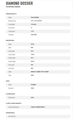 Harry Winston Diamond Solitaire ring with round brilliant cut Natural Diamond 0.50ct (with GIA Diamond Dossier Report graded as E VVS1 #14241874). Platinum - 950. Ring size: H. Band width: 1.7mm - 2.1mm. Weight: 4.1g. With Harry Winston inner & outer Box. (Pre-owned)