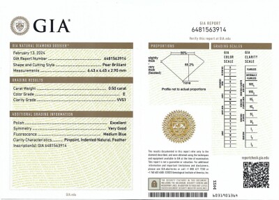 A loose pear shape Natural diamond of 0.50ct (with GIA summary report graded as E VVS1 #6481563914). (New)