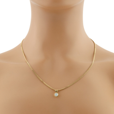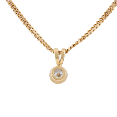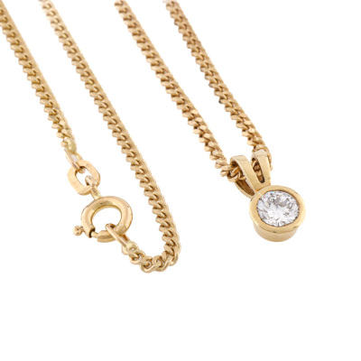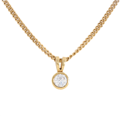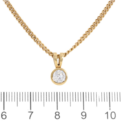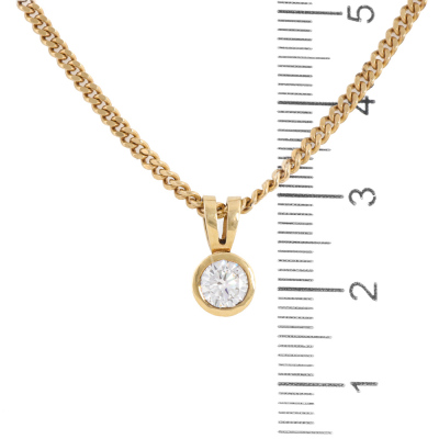 Diamond solitaire pendant with round brilliant cut Natural Diamond of approximately 0.50ct (Estimated grading: G-H VS). 9ct yellow gold with 52cm 9ct yellow gold chain. Weight: 7.3g.
