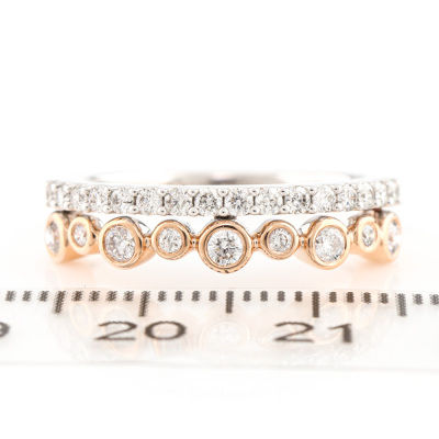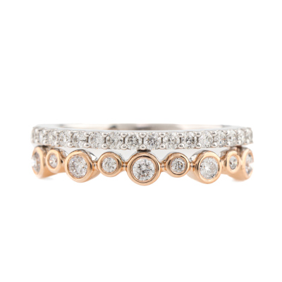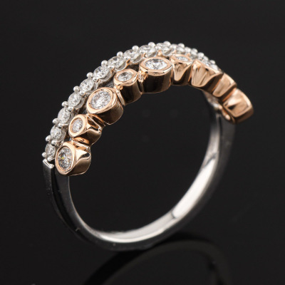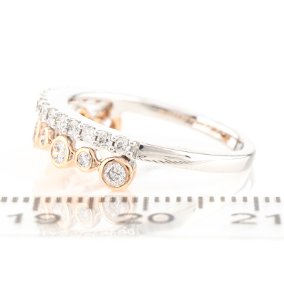 Diamond dress ring with 25 round Natural Diamonds totalling 0.52ct (Estimated grading: H SI). 14ct white & rose gold. Ring size: M½. Band width: 1.7mm - 1.8mm. Weight: 3.4g. (As New)