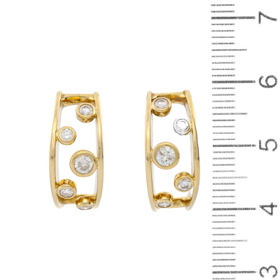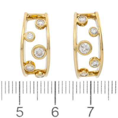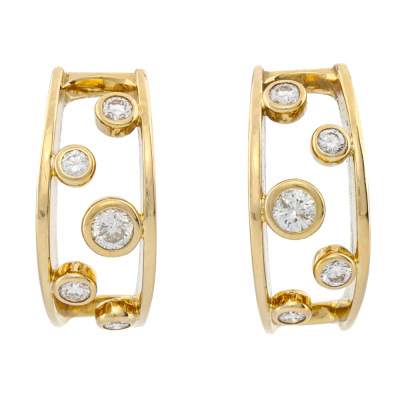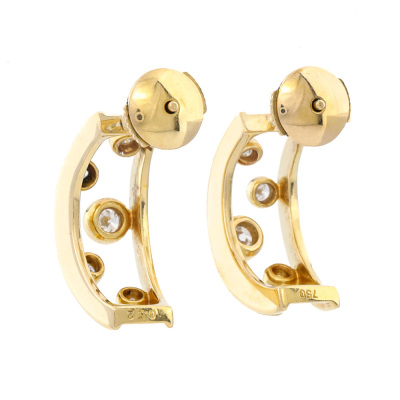 Diamond earrings with round Natural Diamonds totalling 0.52ct (Estimated grading: HI SI-P1). 18ct yellow gold with 18ct yellow gold locking backs. Earring length: 1.9cm and width: 8.3mm - 7.0mm. Weight: 7.5g.