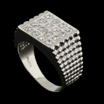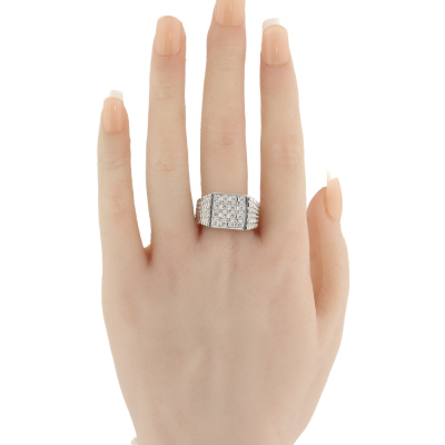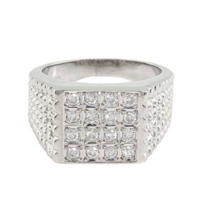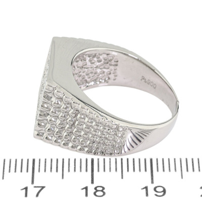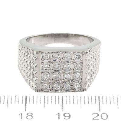 Diamond mens ring with 16 round Natural Diamonds totalling 0.53ct (Estimated grading: G-H SI). Platinum - 900. Ring size: R. Band width: 3.4mm-6.8mm. Weight: 20.5g. (Pre-owned)