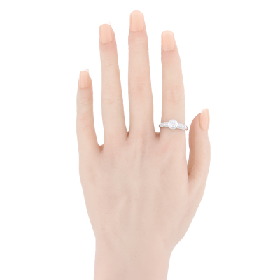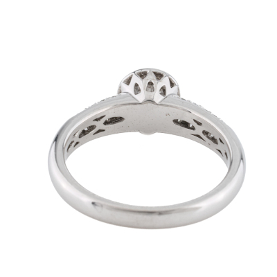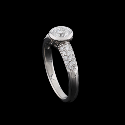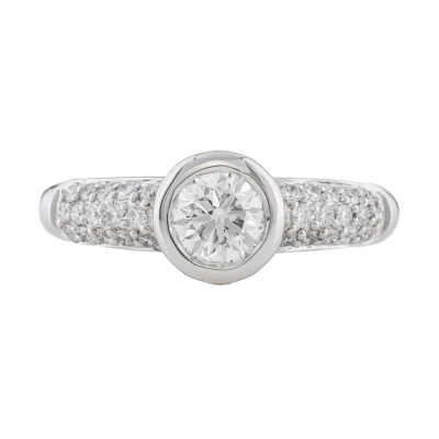 Diamond solitaire ring with a centre round Natural Diamond of approximately 0.54ct (Estimated grading: H VS-SI) and round Natural Diamonds totalling approximately 0.23ct. 18ct white gold. Ring size M 3/4. Band width: 2.5mm - 3.3mm. Weight: 4.8g. (Pre-owned)