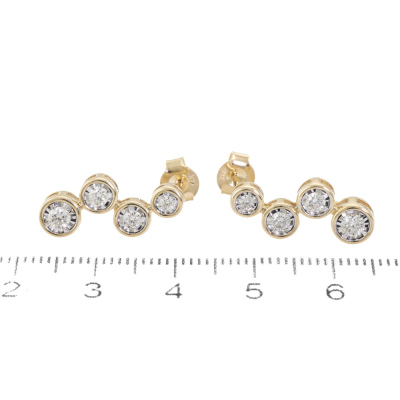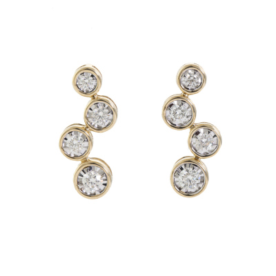 Diamond drop earrings with graduated round Diamonds totalling 0.57ct (Estimated grading: J-K SI). 14ct yellow and white gold claw setting. Weight: 2.9g. (New)