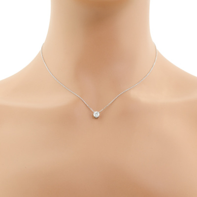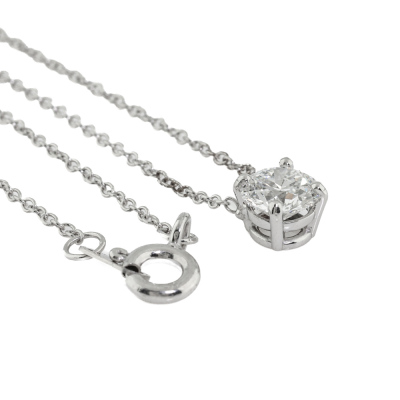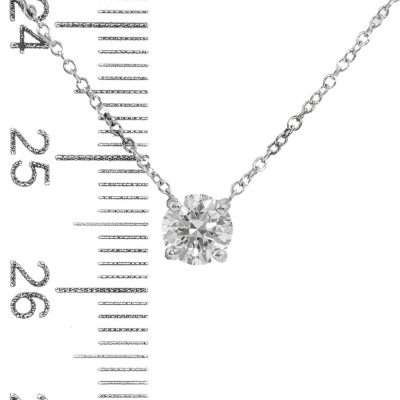 Diamond solitaire pendant with round brilliant cut Natural Diamond of 0.58ct (with GIA Diamond Dossier report graded as D VS1 #2528547456). 18ct white gold with 18ct white gold adjustable chain. Length: 41cm. Weight: 1.5g (New)