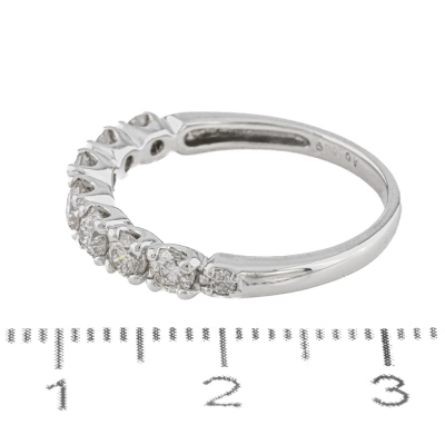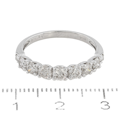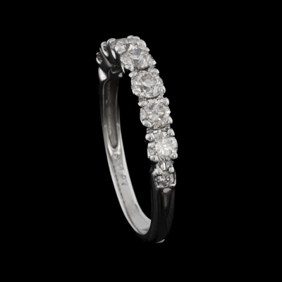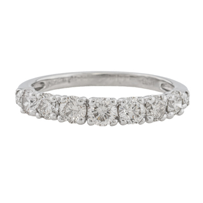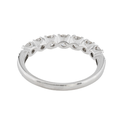 Diamond eternity ring with 9 round Natural Diamonds totalling approximately 0.60ct (Estimated grading: K-M SI-P1). Platinum. Ring size N. Weight: 2.8g. (Pre-owned)