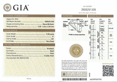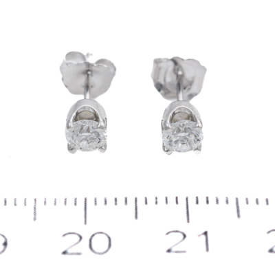Diamond stud earrings with 2 round brilliant cut Natural Diamonds totalling 0.60ct (with GIA Dossier Reports graded as D SI1 #3505251335, #6482769993). 18ct white gold. Weight: 1.1g. (New)