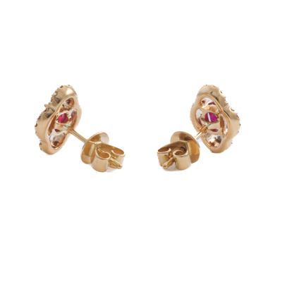 Ruby and Diamond earrings with oval shape Natural Rubies totalling 0.60ct and round Natural Diamonds totalling 0.16ct. 18ct yellow gold. Weight: 2.3g. (New)