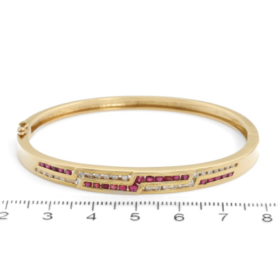 3.08ct Ruby & 1.07ct Diamond Bangle, Gold 18.7G