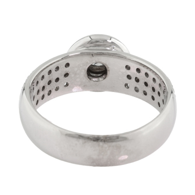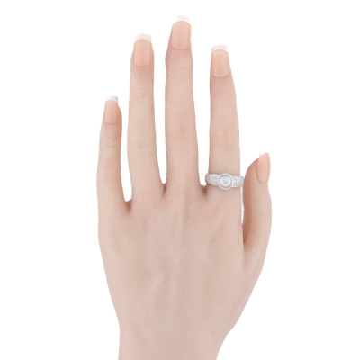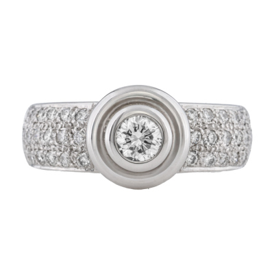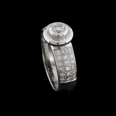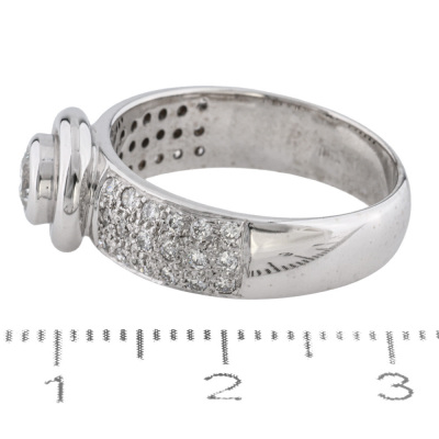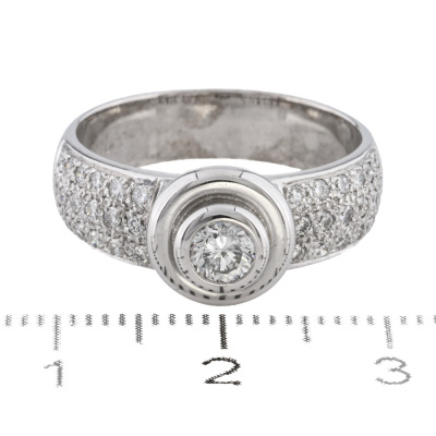 Diamond dress ring with centre round brilliant cut Natural Diamond of 0.25ct and pave set round Natural Diamonds totalling 0.36ct (Estimated grading for all Diamonds: G-H SI). 18ct white gold. Ring size N3/4. Band width: 4.9mm - 5.7mm. Weight: 8.1g.