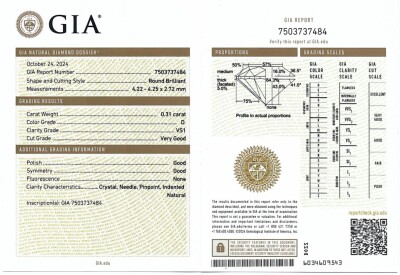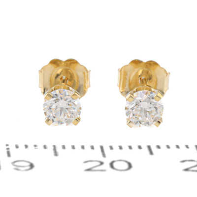 Diamond stud earrings with 2 round brilliant cut Natural Diamonds totalling 0.61ct (with GIA Dossier Reports graded as D VS1 #6505528273, 7503737484). 18ct yellow gold. Weight: 1.0g. (New)