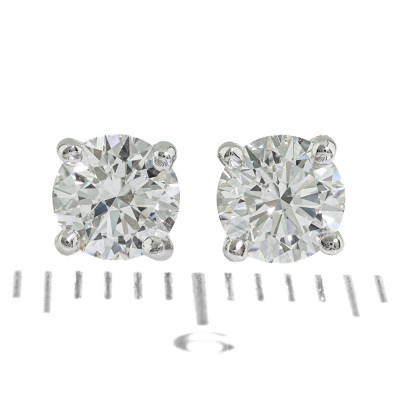 Diamond stud earrings with 2 round brilliant cut Natural Diamonds totalling 0.61ct (with GIA Summary Reports graded as D VS1 #6525230746, 1523424168 ). 18ct white gold. Weight: 1.0g. (New)