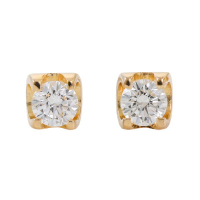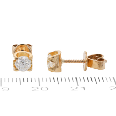 Diamond stud earrings with 2 round Natural Diamonds totalling 0.61ct (Estimated grading: G VS). 18ct yellow gold with 20ct yellow gold screw backs. Weight: 2.5g.