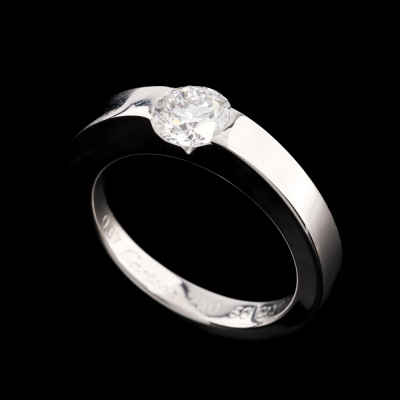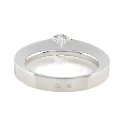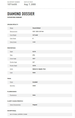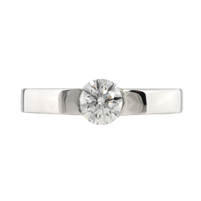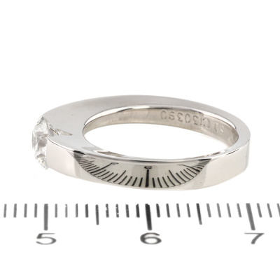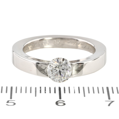 Cartier Date Diamond ring with round brilliant cut Natural Diamond of 0.67ct (with copy of GIA Report graded as E VVS1 #10716455). 18ct white gold. Cartier stamped size 50, measures as Australian size: J 1/4- ring resizing is not recommended. Width: 3.2mm. Weight: 6.5g. With Cartier box.