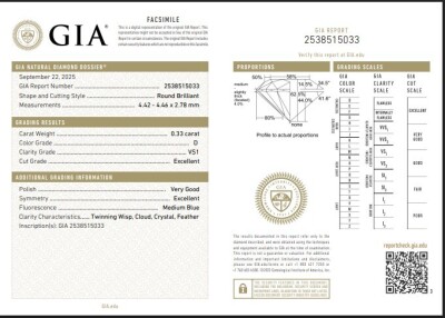 Diamond stud earrings with 2 round brilliant cut Natural Diamonds totalling 0.67ct (with GIA Diamond Dossier Reports graded as D VS1 #2538515033, 1519028644). 18ct yellow gold. Weight: 0.9g.