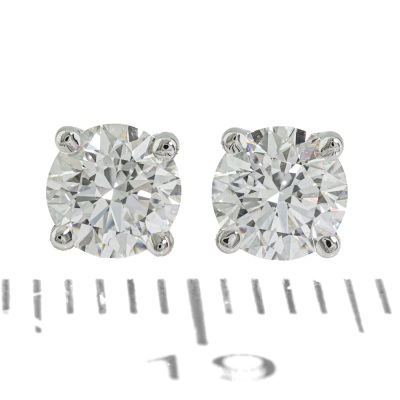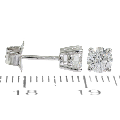 Diamond stud earrings with 2 round brilliant cut Natural Diamonds totalling 0.68ct (with copy of GIA summary Reports graded as D VS1 #7512998701 & E VS1 #7532321455). 18ct white gold. Weight: 0.9g. (New)