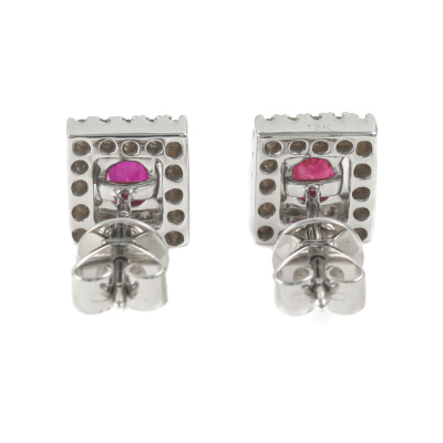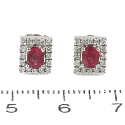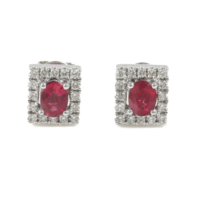 Ruby and Diamond earrings with oval shape Natural Rubies totalling 0.68ct and round Natural Diamonds totalling 0.20ct. 18ct white gold. Weight: 2.6g. (New)