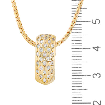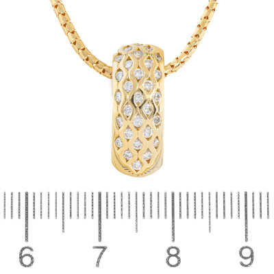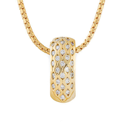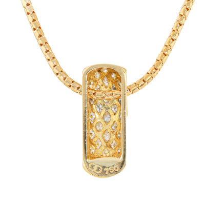 Diamond pendant with round Natural Diamonds totalling approximately 0.70ct (Estimated grading: H-I SI). 18ct yellow gold with 45cm 18ct yellow gold chain. Weight: 7.8g. (Pre-owned)