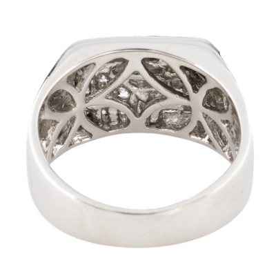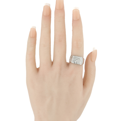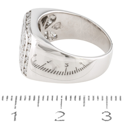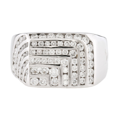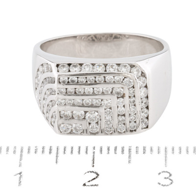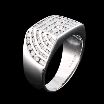 Diamond Pinky ring with round Natural Diamonds totalling approximately 0.70ct (Estimated grading: GH SI). 18ct white gold. Ring size M. Band width: 4.4mm - 7.5mm. Weight: 8.9g.