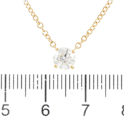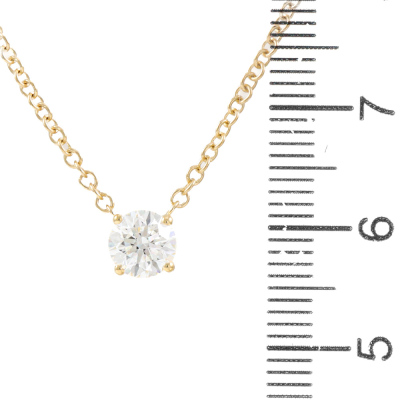 Diamond Solitaire Pendant with round brilliant cut natural diamond of 0.70ct (with GIA report graded as D SI1 #2526450224). 18ct yellow gold attached. Length 45.0cm. Weight 2.9g (New)