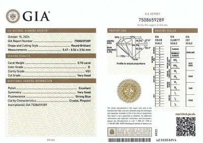 0.70ct Diamond Solitaire Pendant GIA D VS1