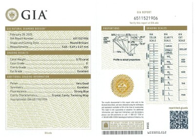 Diamond solitaire pendant with round brilliant cut Natural Diamond of 0.70ct (with GIA Diamond Report graded as E VS1 #6511521906). Platinum and 18ct white gold 40.0cm chain. Weight: 2.8g (New)