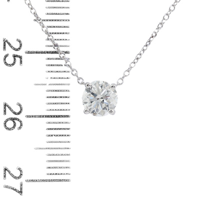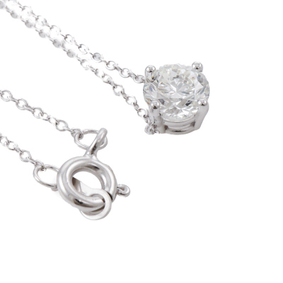Diamond solitaire pendant with round brilliant cut Natural Diamond of 0.70ct (with GIA Diamond Dossier report graded as G VVS1 #1528772161). 18ct white gold with 18ct white gold attached chain. Length 42cm. Weight: 1.5g
