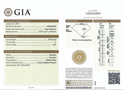 A loose heart shape Natural Diamond of 0.70ct (with GIA summary report graded as E VS1 #1483404890). (New)