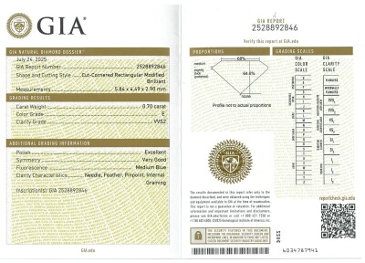 A loose radiant cut Natural Diamond of 0.70ct (with GIA Diamond Dossier report graded as E VVS2 #2528892846). (New)