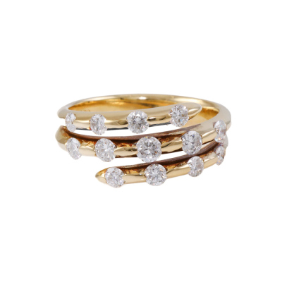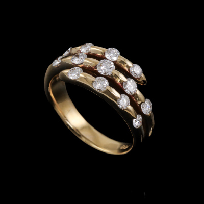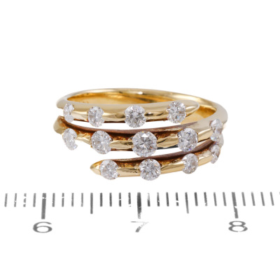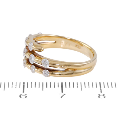 Diamond dress ring with 13 round Natural Diamonds totalling 0.71ct (Estimated grading: H SI). 18ct yellow gold. Ring size K. Band width: 3.3mm-4.7mm. Weight: 5.4g. (Pre-owned)