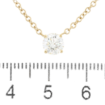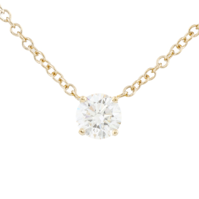 Diamond Solitaire Pendant with round brilliant cut natural diamond of 0.73ct (with GIA report graded as G VVS1 # 6531129877). 18ct yellow gold attached. Length 45.0cm. Weight 2.9g. (New)