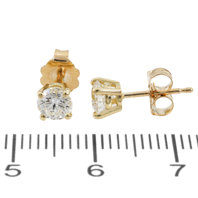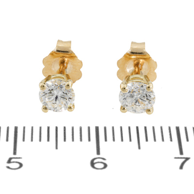 Diamond stud earrings with round brilliant cut Natural Diamonds totalling 0.74ct (with GIA Reports graded as E SI2 #5516164553, 2514199114). 18ct yellow gold. Weight: 1.0g. (New)