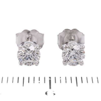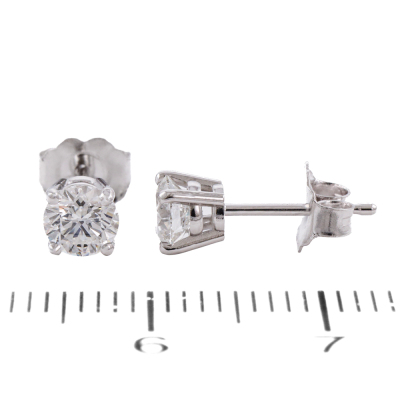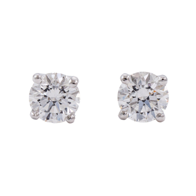 Diamond stud earrings with 2 round brilliant cut Natural Diamonds totalling 0.74ct (with GIA summary Reports graded as E SI2 # 6511199040, 7512200452). 18ct white gold. Weight: 0.9g. (New)