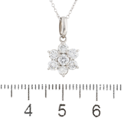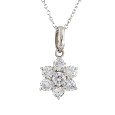 Diamond dress pendant with 7 round Natural Diamonds totalling 0.75ct (Estimated grading: H SI). Platinum - 900 with 18ct white gold 40.5cm chain. Weight: 3.1g. (Pre-owned)