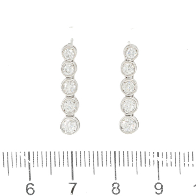 Diamond drop earrings with round Natural Diamonds totalling 0.76ct (Estimated grading: H SI). 18ct white gold. Length: 2.0cm. Item weight: 3.2g
