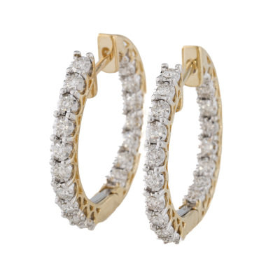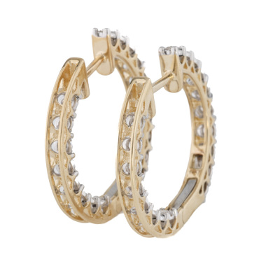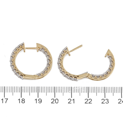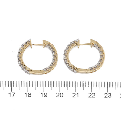 Diamond inside-out hoop earrings with 36 round natural Diamonds totalling 0.76ct (Estimated grading: H-I SI). 14ct yellow gold. Hoop diameter: 25mm. Weight: 6.2g.