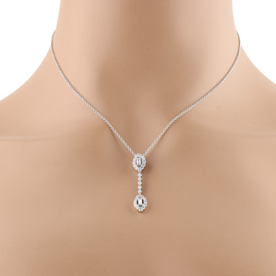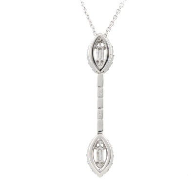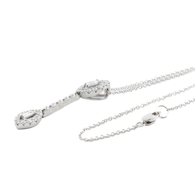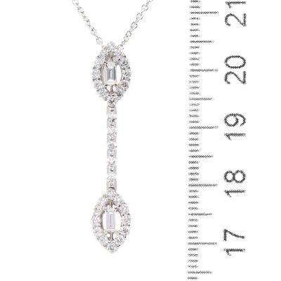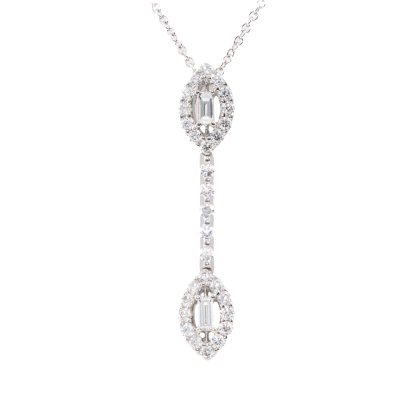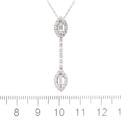 Diamond pendant with round & baguette cut Natural Diamonds totalling 0.76ct (Estimated grading: G-H VS). 18ct white gold with 4.05cm 18ct white gold chain. Weight: 5.2g. (Pre-owned)