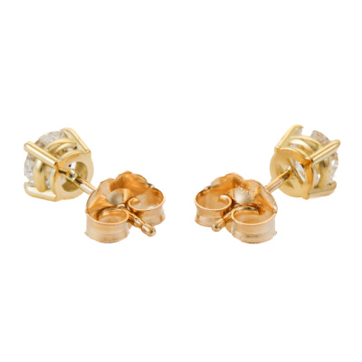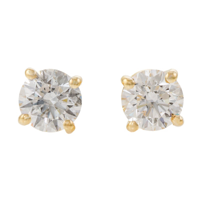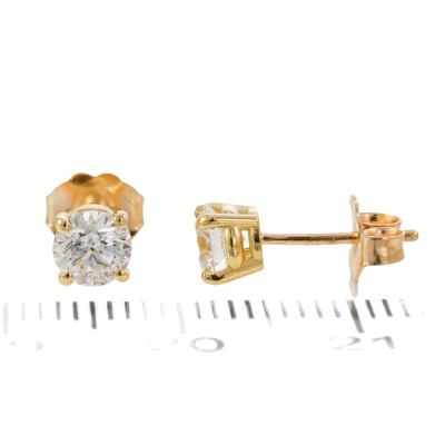 Diamond stud earrings with 2 round brilliant cut Natural Diamonds totalling 0.76ct (with GIA Diamond Dossier Reports graded as E SI2 #1507352418, 6505389610). 18ct yellow gold. Weight: 1.1g.