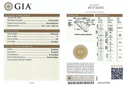 Diamond stud earring with round brilliant cut Natural Diamonds totalling 0.77ct (with GIA Dossier Reports graded as D SI1 #6512166353, E SI2 #1538022918). 18ct white gold. Weight: 0.9g. (New)