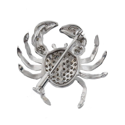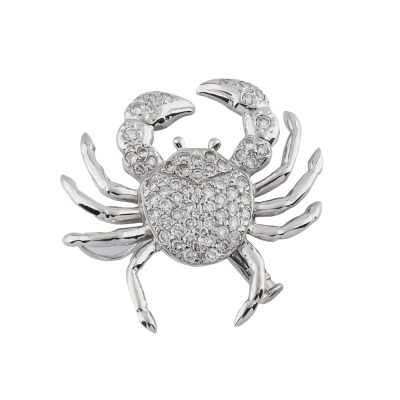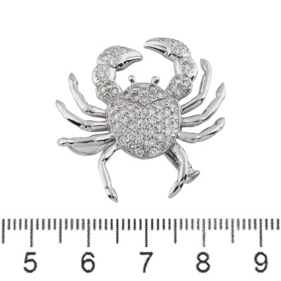 Diamond crab design brooch/pendant with round Natural Diamonds totalling 0.78ct (Estimated grading: H-I SI). 18ct white gold with 14ct white gold pin. Size: 3cm x 2.8cm. Weight: 6.1g. (Pre-owned)