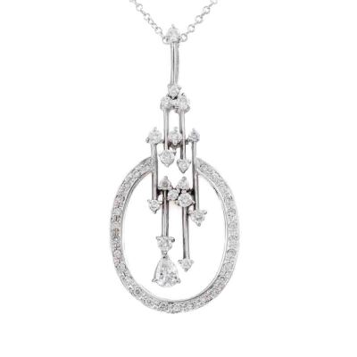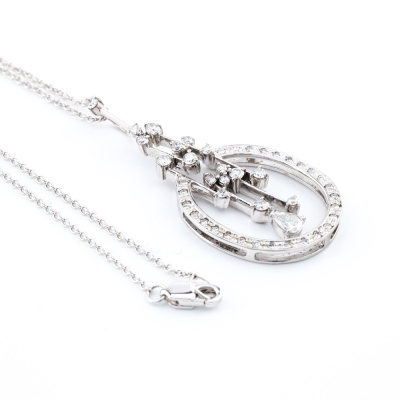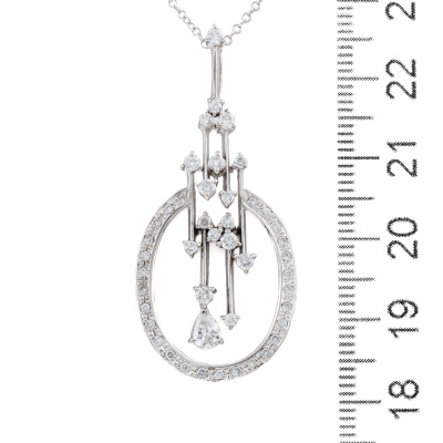 Diamond pendant with a pear shape Natural Diamonds totalling 0.18ct and surrounding of round Natural Diamonds totalling 0.60ct (Estimated grading: H-I SI). 18ct white gold with 18ct white gold 40.5cm chain. Weight: 7.5g. (Pre-owned)