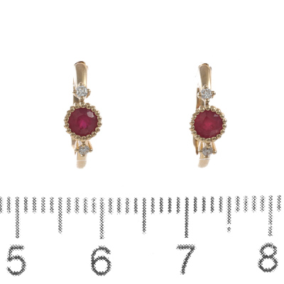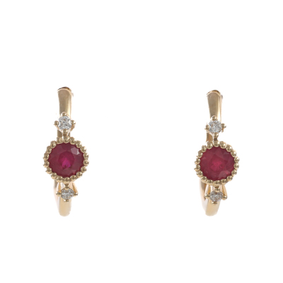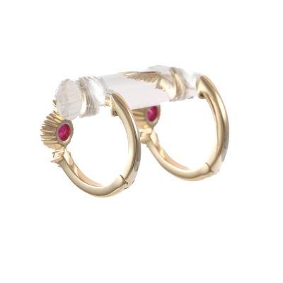 Huggie earring with round Natural Rubies totalling 0.79ct and round Natural Diamonds totalling 0.05ct. 18ct yellow gold. Weight: 2.7g. (New)