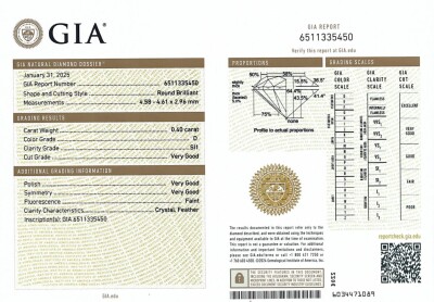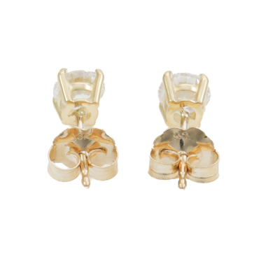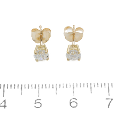 Diamond stud earrings with 2 round brilliant cut Natural Diamonds totalling 0.80ct (with GIA Dossier Reports graded as D SI1 & E SI1 #6511335450, 7518336295). 18ct yellow gold. Weight: 0.9g. (New)