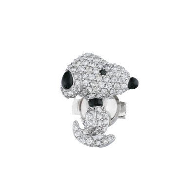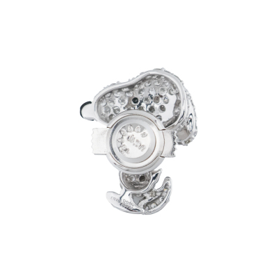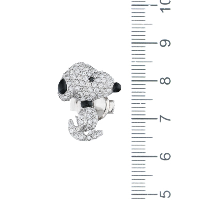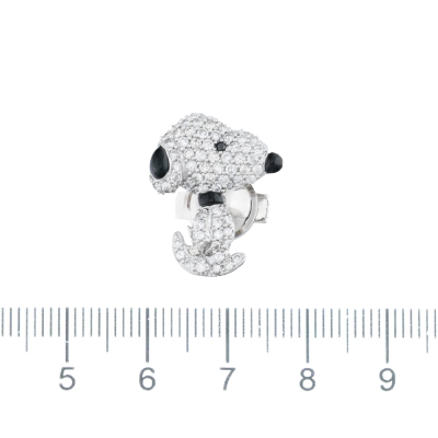 Diamond snoopy design brooch with 1 Black Natural Diamond of 0.01ct and round Natural Diamonds totalling 0.80ct (Estimated grading: G SI) . 18ct white gold. Weight: 4.4g. (Pre-owned)