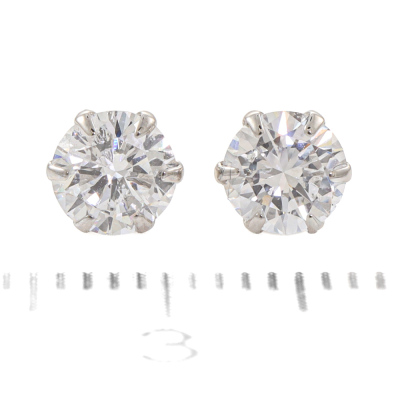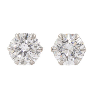 Diamond stud earrings with 2 round brilliant cut Natural Diamonds totalling 0.81ct (Estimated grading: G-H SI). Platinum-900 with 18ct white gold backs. Weight: 0.8g (Pre-owned)
